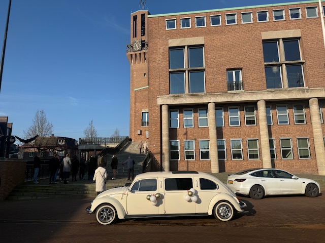 Kever Limousine Wit Huren voor elke gelegenheid. Laat u als een beroemdheid vervoeren in deze originele unieke limousine. Er is plaats voor 5 personen exclusief de chauffeur. De limo is voorzien van een open dag wat natuurlijk open en dicht kan. De 16oo dubbelpoorts motor zorgt voor een soepele luchtgekoelde rit tijdens jullie bruiloft, gala of andere speciale gelegenheid